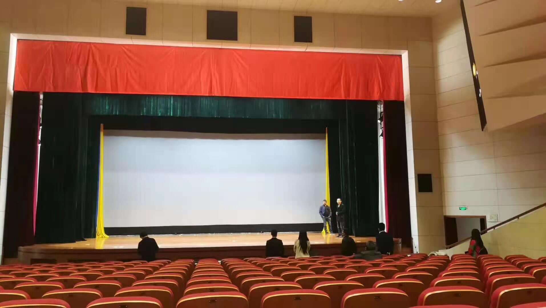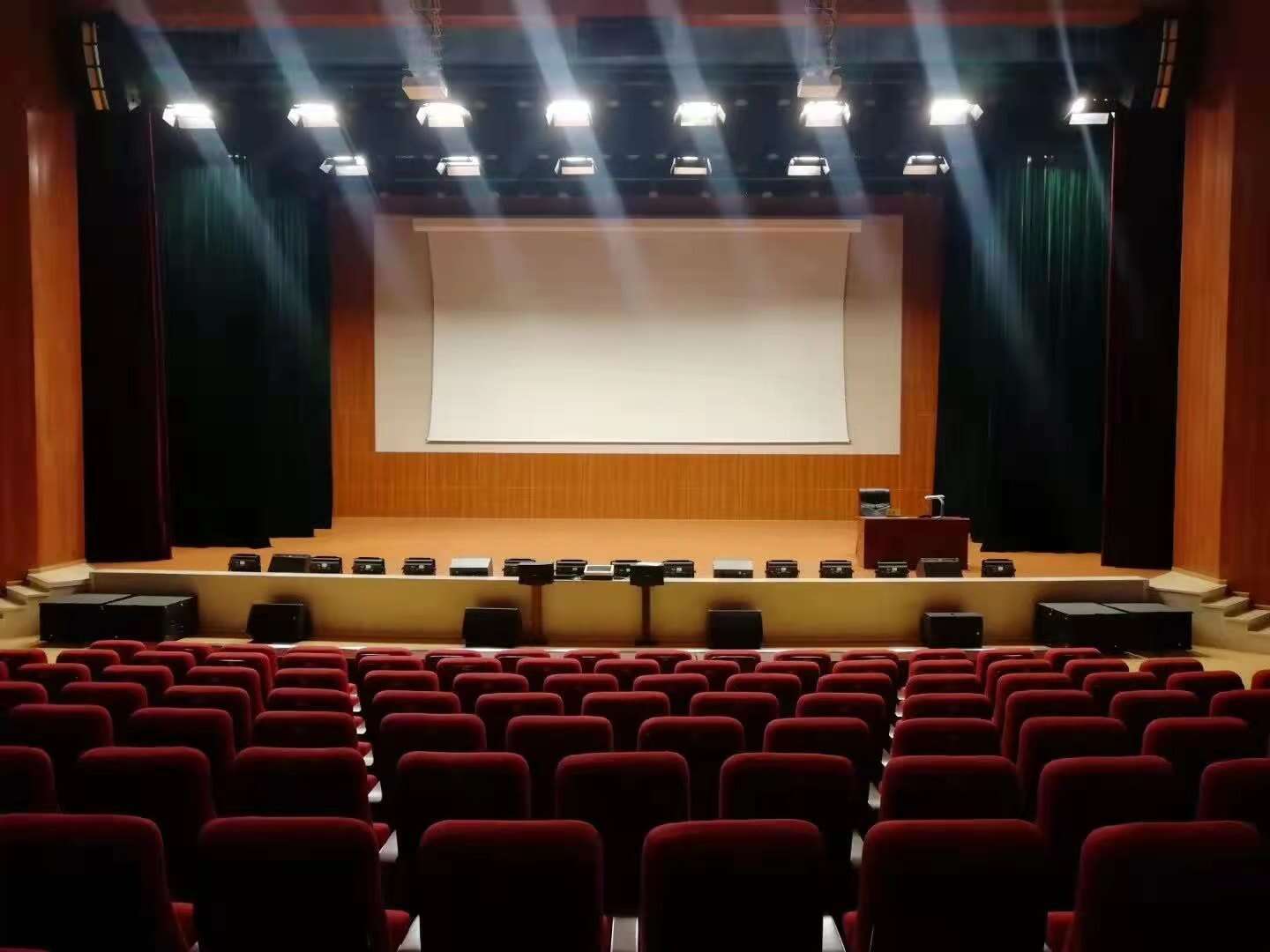 1. 防火幕:防火幕緊貼臺(tái)口;一般超過(guò)1200坐,要求必須設(shè)計(jì)防火幕;2. 前沿幕(徽標(biāo)):防火幕以后,間隔300mm左右;若沒(méi)有防火幕緊靠臺(tái)口200-300mm;3. 對(duì)開(kāi)大幕: